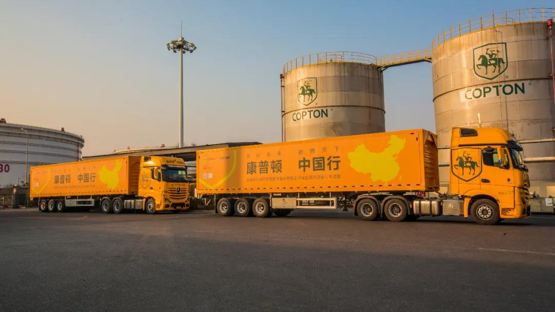 康普頓執行總裁楊奇峰先生與路博潤添加劑亞太區銷售與市場高級總監胡鍔共同宣布行車試驗正式啟程,兩臺試驗車陸續啟動駛出康普頓黃島工業園。